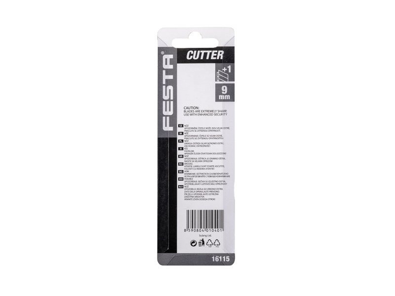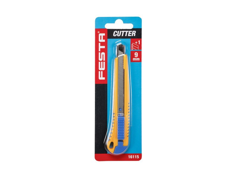 FESTA vágókés 9mm, minőségi anyagok, fémrúd, automata reteszelés biztosítékkal, 1 db tartalék penge, buborékfólia.