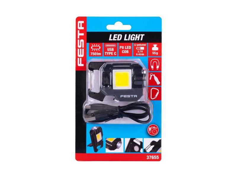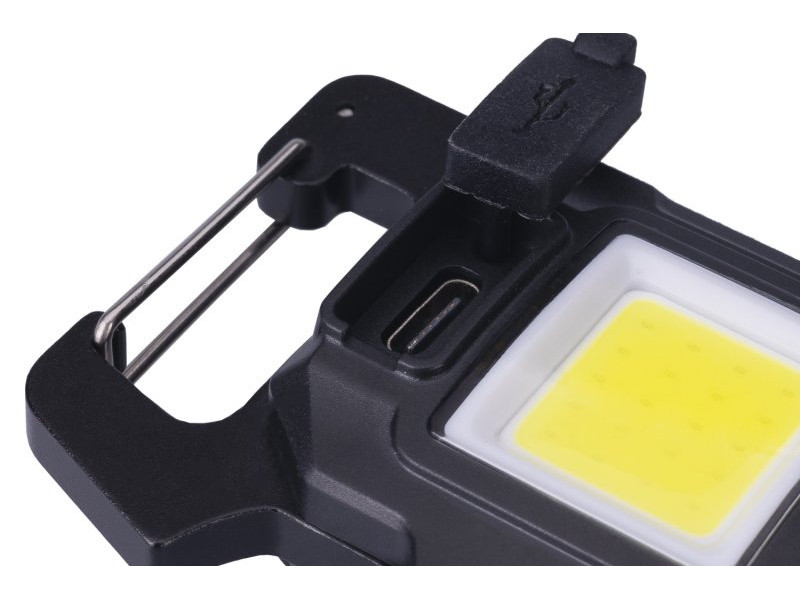 Újratölthető, praktikus mini zseblámpa karabinerrel és két COB LED zseblámpa -vel magas, 750 lm-es fényárammalLítium-pol újratölthető akkumulátor 3,7 V / 0,45 Ah, USB-C töltő - kábel mellékelvea modern LED-típusoknak köszönhetően KUKORICACSŐ diódáknak köszönhetően a lámpa még kis méretek mellett is nagy fényáramot ér elakár 40 méteres fénytartományA zseblámpa kis méretben rejti a nagyszerű lehetőségeket - karabiner, erős mágnes, felhajtható állvány, 6 mm-es menet állványra szereléshez, üvegnyitófelhasznált anyagok: alumínium és ABS műanyag, fedél IP44széleskörű felhasználási lehetőségek - szabadtéri tevékenységekhez, kempingezéshez, horgászathoz, kerékpárosoknak, munkahelyen és otthon