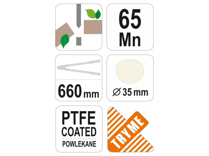 Az Állítható Borotva hatékonyan vágja a közepes vastagságú száraz ágakat és bokrokat hossza: 66cm a pengét mangánacélból (65 Mn) készítették, amely magas kopásállóságot biztosít. a pengének felületét egy réteg politetrafluoretilén (PTFE) borítja, amely növeli a kényelmet. maximum vágási átmérő 35mm fülek a fogantyúkon Használati figyelmeztetések: A kézi szerszámok használata veszélyes lehet! Mindig használjon személyes védőfelszerelést munka közben. Csak megfelelő és sértetlen szerszámokat használjon. Válassza ki a szerszám típusát és méretét a tervezett alkalmazás szerint. Ne terhelje túl a szerszámokat. Tartsa távol a szerszámokat a gyermekektől. Használja megfelelően a szerszámokat.