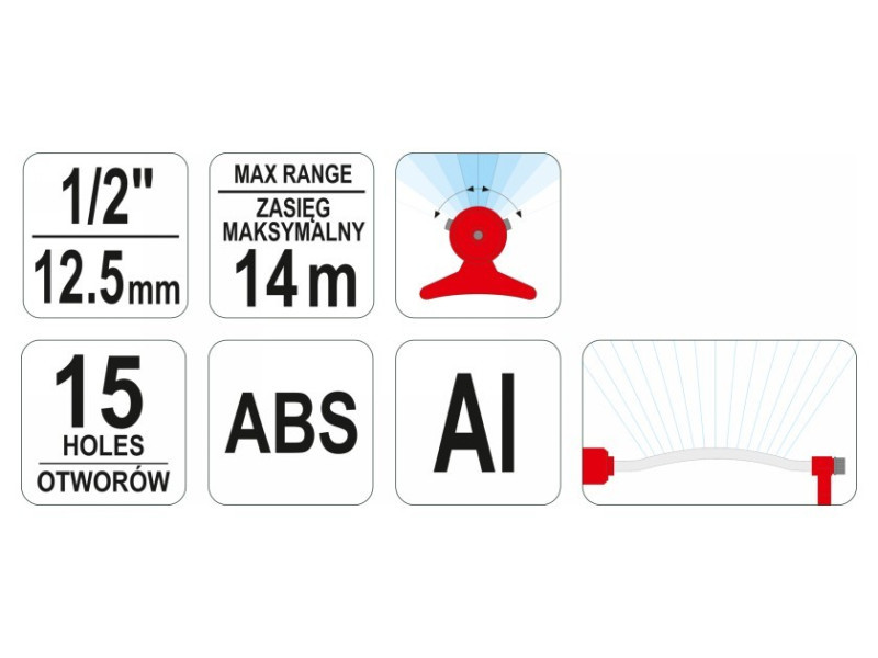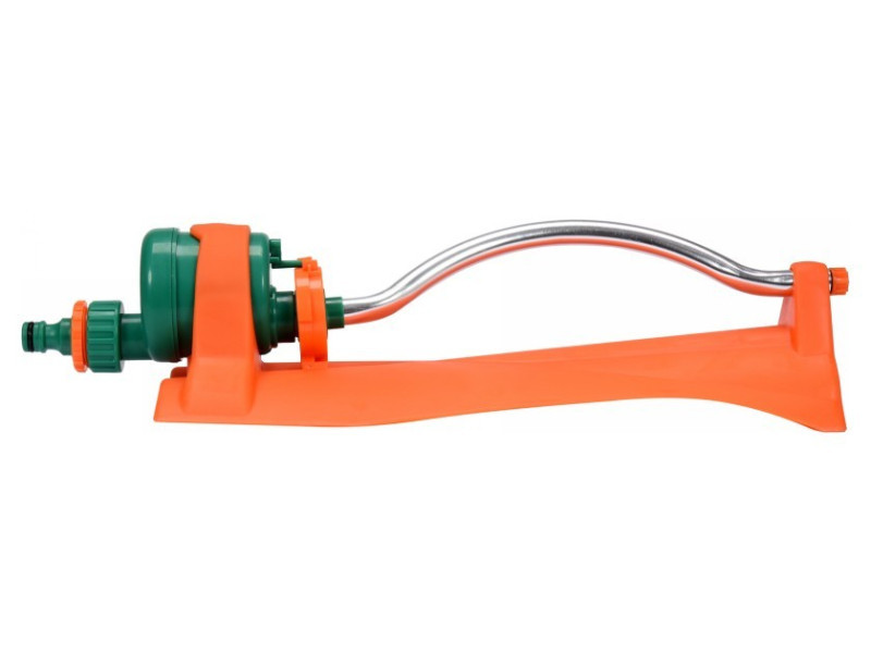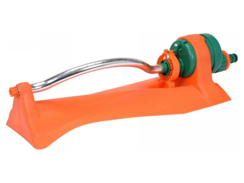 Föld feletti öntözőrendszer állvánnyal a füves területek és egyéb zöld területek öntözésére. kerti tömlővel működtethető - gyors csatlakozás az állvány lehetővé teszi, hogy bárhol felállíthassa a kertben. Minimális érintkezési felülete van, így nem károsítja a fű felületét maximális öntözési hatótávolság: 14 méter 15 permetező lyuk állítható, szabályozható ABS műanyagból és alumíniumból készült tartozék tű a permetező lyukak tisztításához