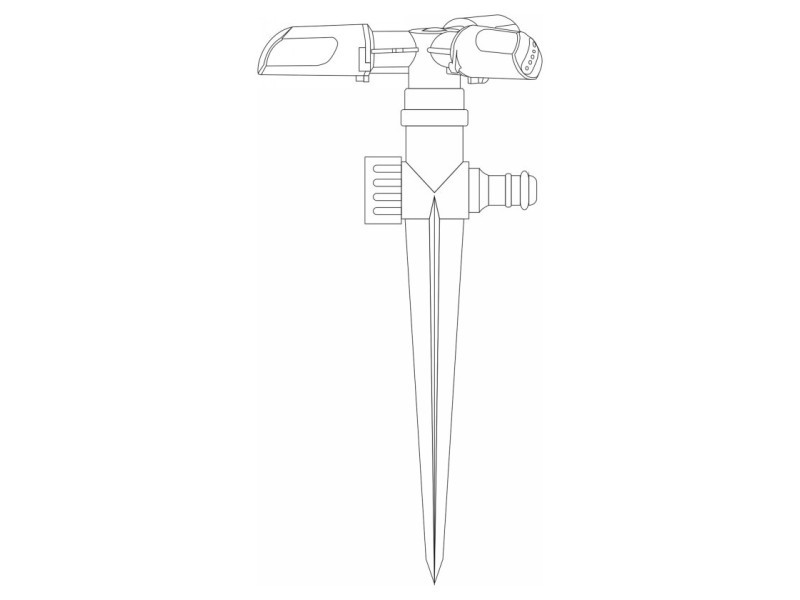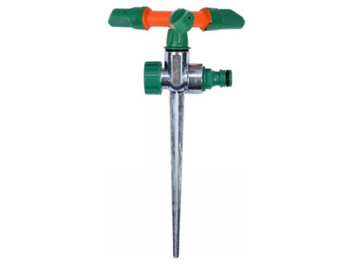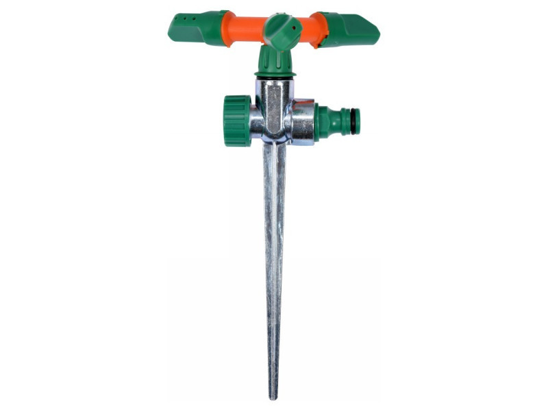 Rotációs szórófej, 3 karos. A cink ötvözetből készült forgás lehetővé teszi a könnyű és kényelmes elhelyezést akár nagyon kis felületeken is, és kényelmes elhelyezést akár nagyon tömör talajon is. a szórófej 360 fokos tartományban működik. a permetezési átmérő akár 14 m-ig terjed. gyorscsatlakozóval és záródugóval van felszerelve.