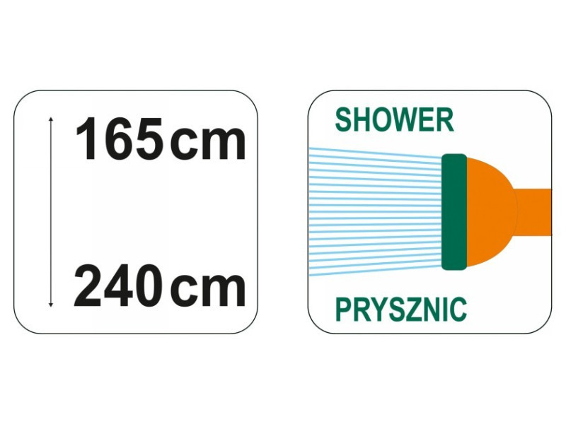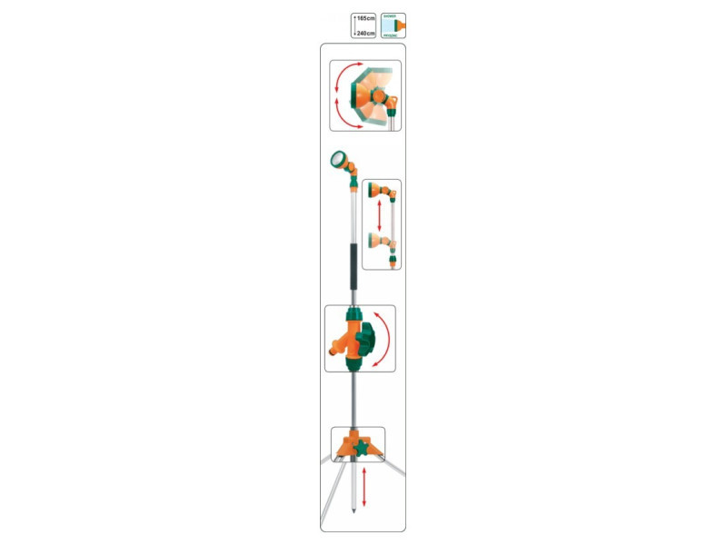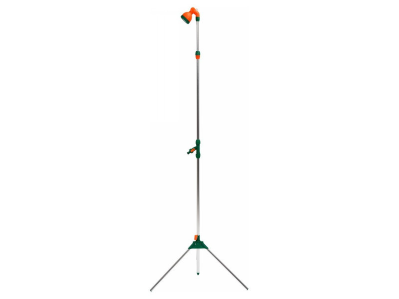 Könnyen telepíthető és könnyen használható kerti zuhany a FLO-tól, állítható magassággal 1,65 és 2,40 m között. teleszkóposan állítható magasság a zuhany tetején. az állítható zuhanyfej biztosítja a zuhanyzás kényelmét. További információk: Könnyű, így nem jelent nagy terhet a szállítás során háromlábú állvánnyal szerelt, ami stabilitást biztosít bármilyen felületen. Gyors csatlakozóval kapcsolódik a vízhez