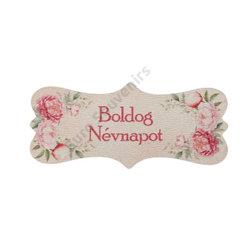 FA TÁBLÁCSLA PEONIÁS "BOLDOG NÉVNAPOT" 7x3 cm