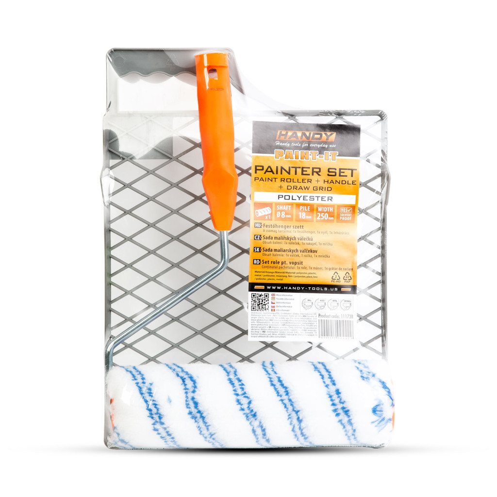 Festőhenger + nyél + lehúzórács - 18 mm poliészter - 250 mm