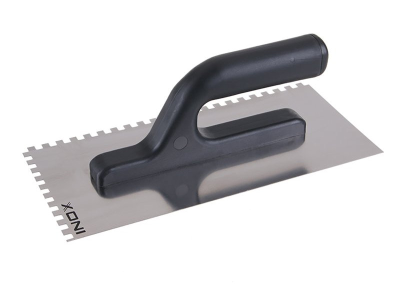 Rozsdamentes acél simító 270x125 mm műanyag nyéllel, e6 fogak, 0,7 mm lemezvastagság. A penge tökéletes formájú, edzett rozsdamentes acélból készült. Elsősorban csempék és burkolatok alá ragasztók felhordására, valamint esztrichek, stukkó, vakolatok, tömítőanyagok és egyéb építőanyagok felhordására használják.
