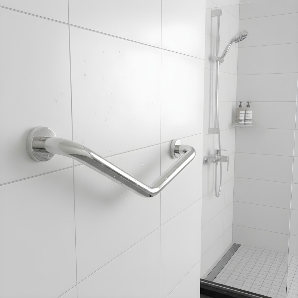 Fürdőszobai kapaszkodó - 45°-ban hajlított - rozsdamentes acél - krómozott - 25 + 25 cm