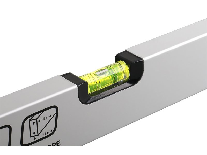újított vízszintes hengeres szint - minden szögből jól látható kettős gyűrűk vízmértékben - külső gyűrűk 2%-os lejtőhöz kifejezettebb fluoreszkáló folyadék a buborék jobb láthatósága érdekében a napon és rossz fényviszonyok között vízmérték két fiolával pontosság 0,5 mm/m = 0,0285° ALU profil falvastagsága 1,5 mm, eloxált kopás ellenálló felület a vízmérték ellenáll a működési hatásoknak10 év garancia a vízmértékekre, MINDEN DARAB ELEKTRONIKUSAN TESZTELVE
