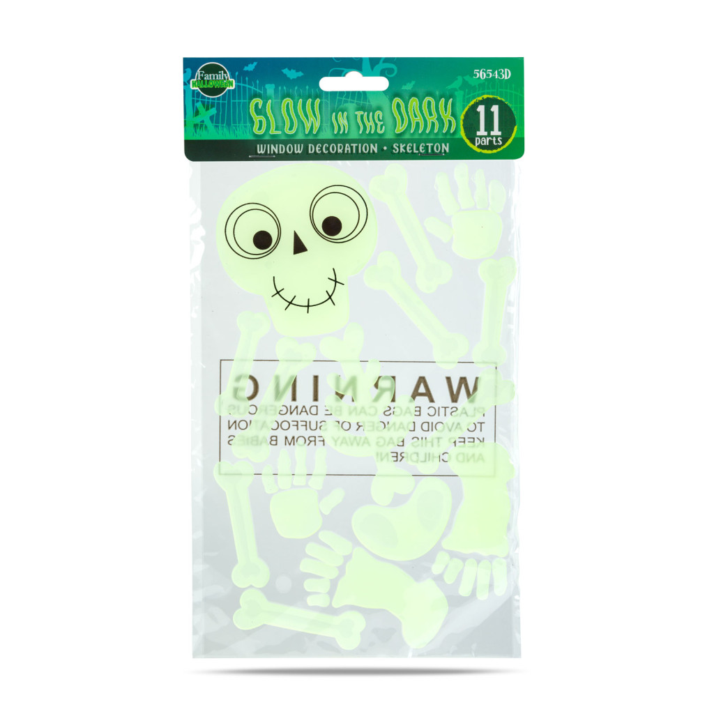 Halloween-i foszforeszkáló ablakdekor - csontváz - 24 x 15 cm