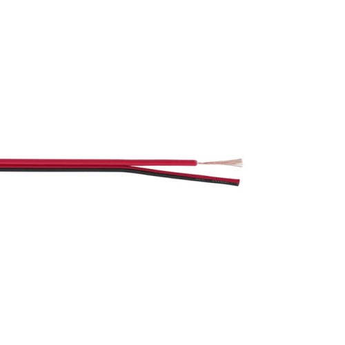"OXIGEN FREE" kábel sodrott, rezezett, alumínium belső erekkel és piros/fekete PVC szigeteléssel.