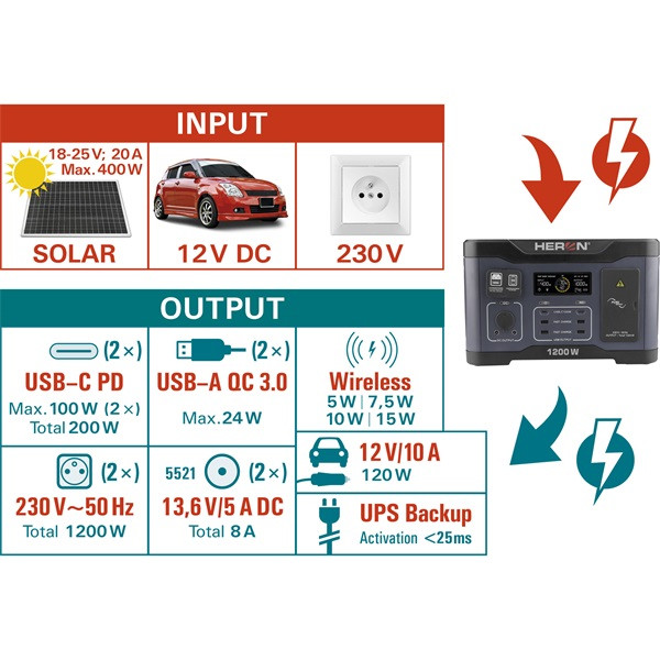 hordozható áramforrás (power station), 1200W, 921 Wh