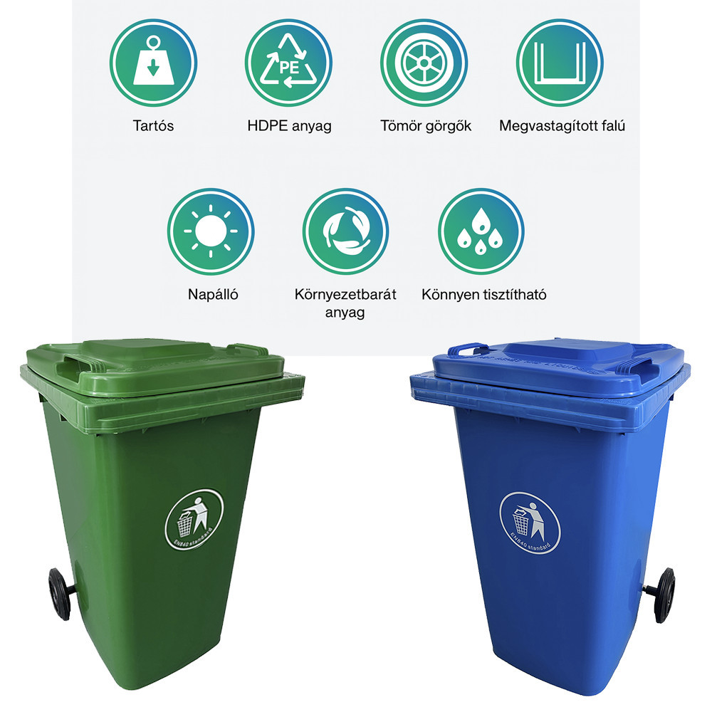 • Űrtartalom: 240 liter, ideális a napi hulladékgyűjtéshez.