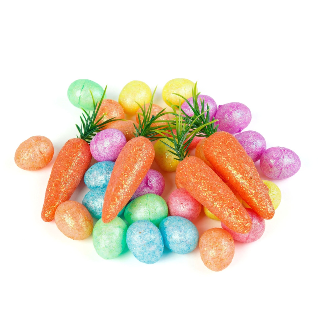 Húsvéti dekoráció - szivacs - csillámos - tojás, répa - 36 db / csomag