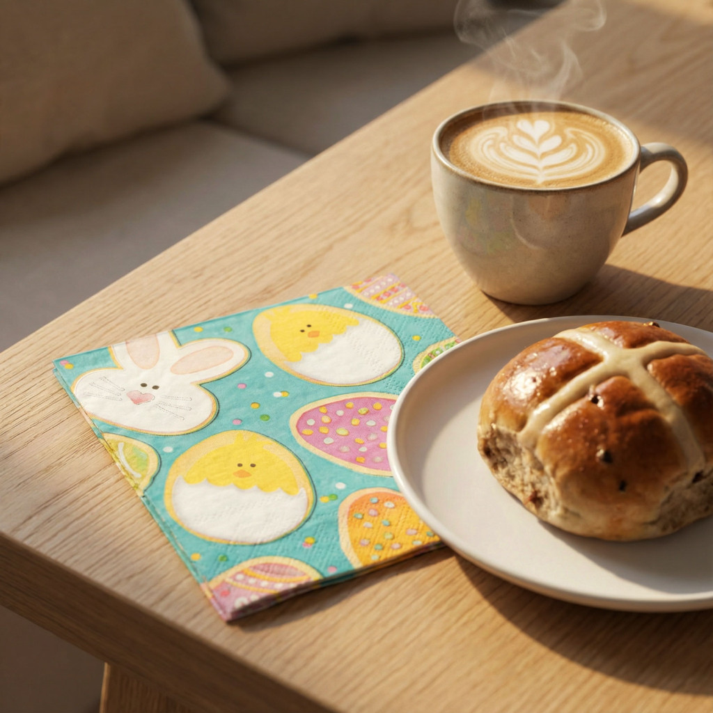 Dobja fel az ünnepi asztalát ezzel a vidám húsvéti szalvétával! A nyuszikat, csibéket és tojásmintákat ábrázoló, színes szalvéta tökéletes kiegészítője a húsvéti terítéknek. Anyaga biztosítja a kiváló nedvszívó képességet és a tartósságot, miközben a mintás design kellemes tavaszi hangulatot teremt. A csomag 16 darab szalvétát tartalmaz, amelyek praktikusak és dekoratívak egyaránt. Ideális választás húsvéti ebédekhez, családi összejövetelekhez vagy ünnepi vendégségekhez.