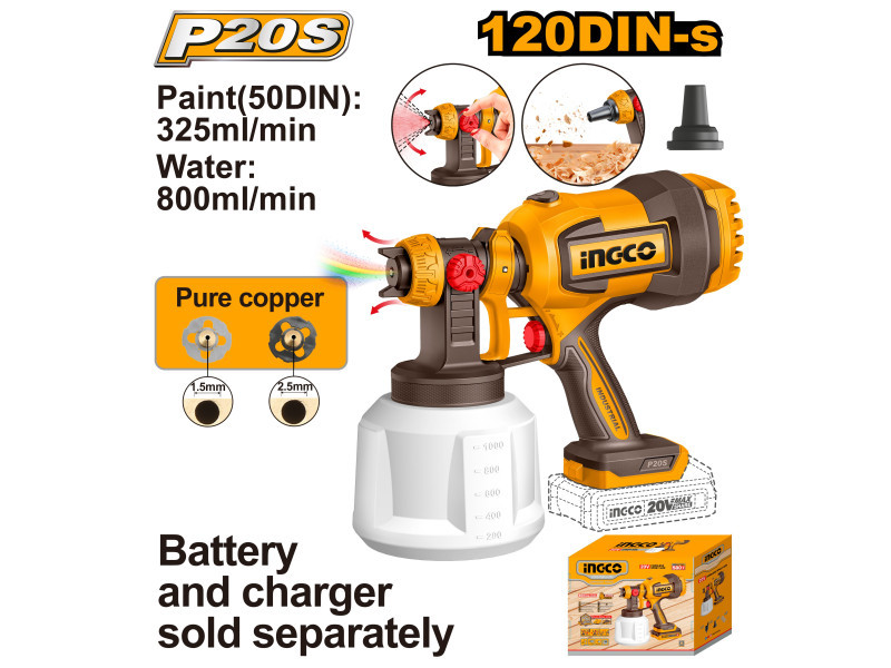 INGCO Akkus festékszóró 20 V (akku és töltő nélkül)