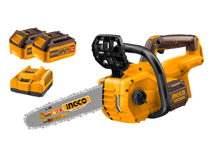 INGCO Akkus láncfűrész 300 mm szénkefe nélküli 20 V (2 x 4,0 Ah akku + töltő)