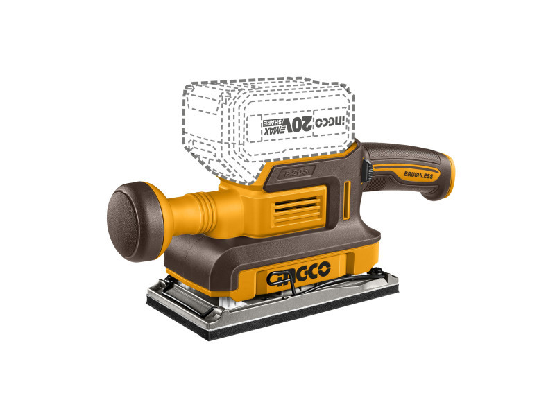 INGCO Akkus rezgőcsiszoló szénkefe nélküli 20 V (akku és töltő nélkül)
