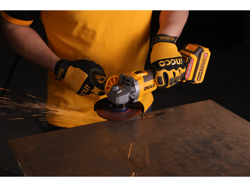 INGCO Akkus sarokcsiszoló 115 mm szénkefe nélküli 20 V (akku és töltő nélkül)