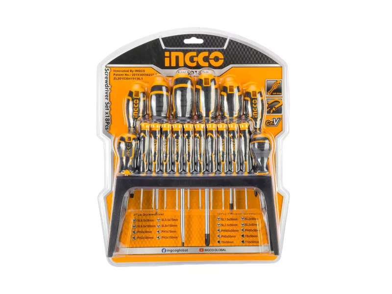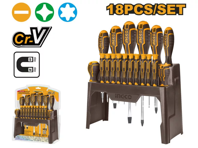 INGCO Csavarhúzó készlet 18 részes mágneses CrV