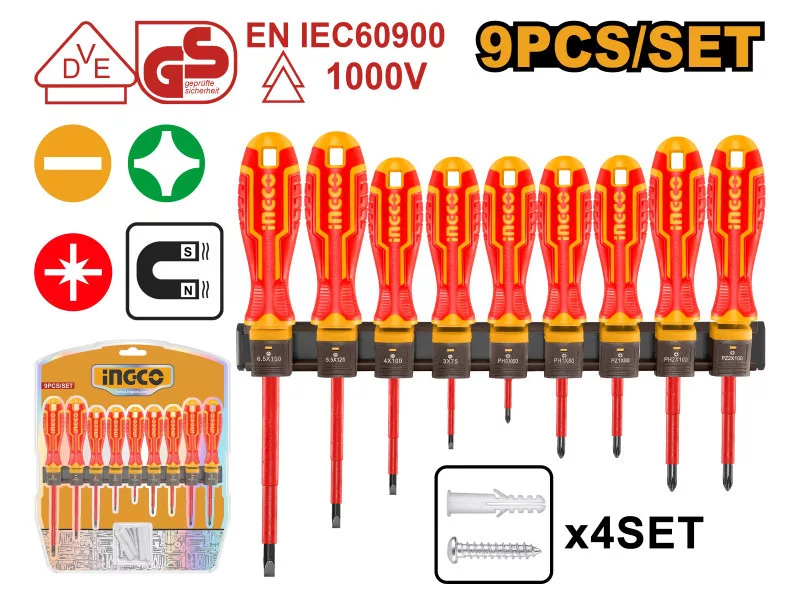 INGCO Csavarhúzó készlet 9 részes mágneses 1000 V-ig szigetelt