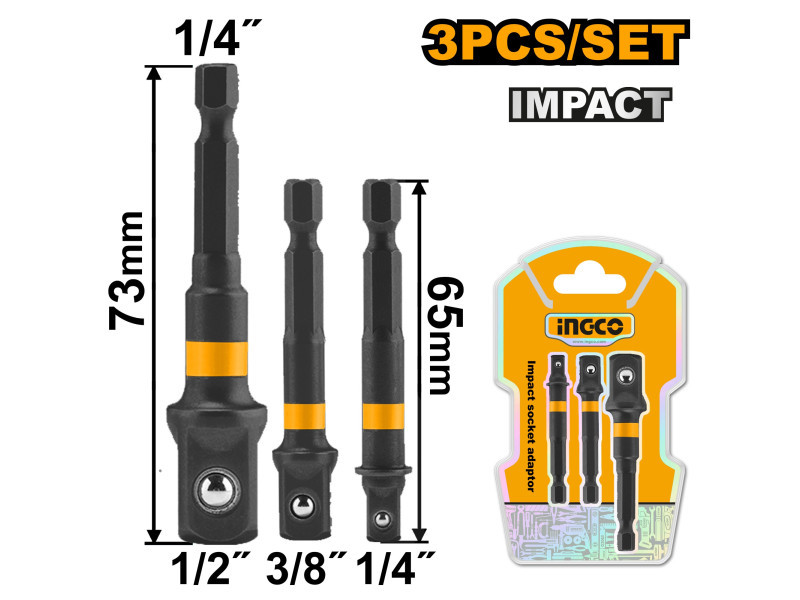 INGCO Dugókulcs adapter 3 részes 1/4" Hex-->1/2", 1/4", 3/8"