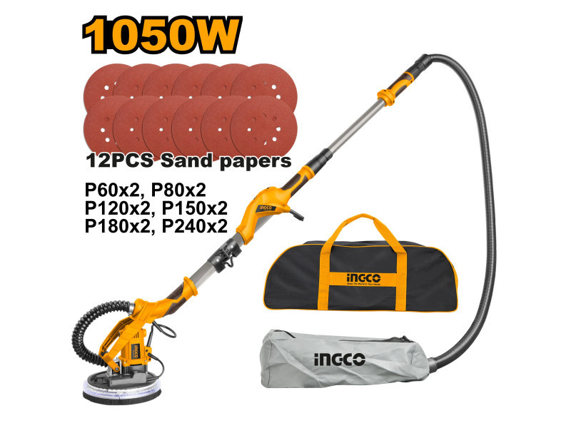 A DWS10501 Ingco falcsiszoló zsiráf egy kiváló minőségű elektromos szerszám, amely gipszkarton, mennyezetek és falak glettanyaggal bevont felületeinek száraz csiszolására lett tervezve, mind beltéri, mind kültéri használatra. A készülék ideális festékrétegek, ragasztómaradványok és laza vakolat eltávolítására is. Az alábbi jellemzőkkel rendelkezik:Összecsukható, könnyen hordozható: A szerszám könnyen tárolható és szállítható, ami nagyban megkönnyíti a munkavégzést.Többsebességű beállítás: Lehetővé teszi a sebesség egyszerű beállítását, így különböző felhasználási környezetekhez alkalmazkodik.Övcsipesz, maximum 1,6 m kiterjesztő rúddal: A kiterjeszthető nyél segít a magas helyeken történő csiszolásban, miközben csökkenti a munkavégzés fáradtságát.Eltávolítható tőr: A tőr eltávolítható, így lehetőség van a nehezen elérhető sarkok csiszolására is.3,3 mm lebegő csiszolókorong: A lebegő korong biztosítja, hogy a szerszám könnyedén alkalmazkodjon az egyenetlen falakhoz, így tökéletesen végezheti el a munkát.360°-os körkörös kefe + 215 mm nagy csiszolókorong: Az optimális porfelszívás érdekében a szerszám különböző kiegészítőkkel van ellátva, amelyek segítenek tisztán tartani a munkaterületet.0-140°-ig állítható háromdimenziós csiszolás: A csiszolófej dőlésszöge állítható, ami kényelmesebbé és hatékonyabbá teszi a munkát különböző szögeknél.Porfelszívó rendszer: A beépített porfelszívó biztosítja, hogy a munkakörnyezet tiszta maradjon, így védve van az egészség is. Technikai adatokFeszültség (V)220 - 240Teljesítmény (W)1050Üresjárati fordulatszám (ford/perc)600 - 2 600Csiszolótalp átmérője (mm)215Csiszolópapír átmérője (mm)225Szívócső átmérője (mm)32Porelszívó átmérője (mm)38Beépített lámpaIgenSzállítási terjedelem: 12 db csiszolópapír, 3 db csatlakozó adapter, 2 m flexibilis cső, 1 db hosszabbító rúd, 1 db porzsák, 1 pár szénkefe