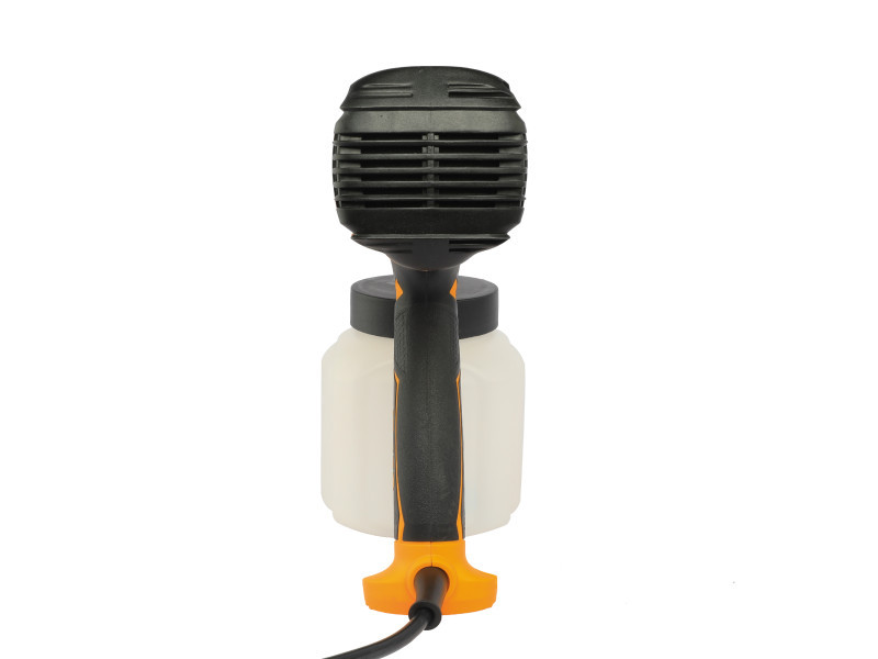 Használható festék, latex festék, bevonatok, formaldehid kezelés, otthoni korlátok, padló bútorok, falak, járművek és más felületek fújására.1. Fúvóka zárókerék a szivárgás megakadályozására2. Fém réz fúvóka, forgassa el a permetezési alak beállításához3. Permetezési mennyiség beállító gomb a permetezési áramlás beállításához4. Kapcsoló ravasz, pólus nélküli sebességszabályozás, minél erősebb a nyomás, annál erősebb a levegő permetező erő5. Gyors hőelvezető nyílások a gép élettartamának biztosítására és a por belépésének megakadályozására6. 800ML-es permetező edény könnyű és könnyen használható7. Csúszásmentes fogantyú, könnyen használható, puha bőr fogantyú, kényelmesebb használatFeszültség: 220 - 240 V ~ 50 / 60 HzFelvett teljesítmény: 450 WÜzemi nyomás: 0.1 - 0.2 barKapacitás: 380 ml / minMax. sűrűség: 50DINTartálykapacitás: 800 ml Szállítási terjedelem: 1 db sűrűség mérő tölcsér, 1 db fúvóka tisztító pálca, Kartondobozban