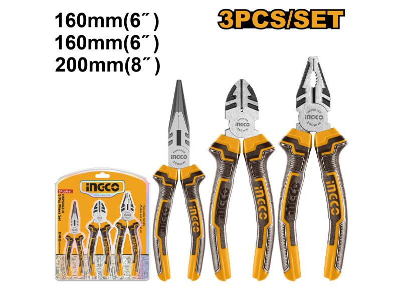 Méretek: kombinált fogó: 200 mm (8"), hosszúcsőrű fogó: 160 mm (6"), oldalcsípő fogó: 160 mm (6")