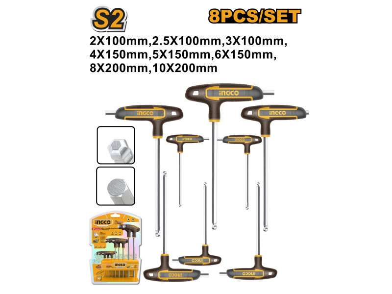 INGCO Gömbfejű imbusz T-kulcs készlet 8 részes S2