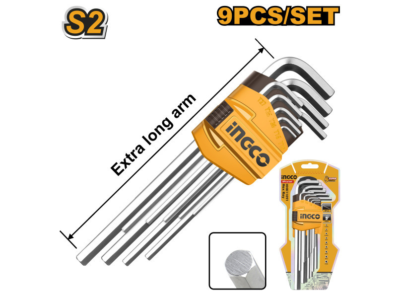 INGCO Hosszú imbuszkulcs készlet 9 részes 1,5-10 mm S2