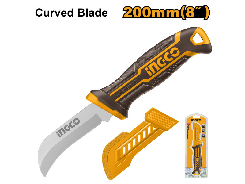 Csupaszítsa le a vezetékeketMagas minőségű rozsdamentes acélMéret: 200 mmHajlított pengeAnyaga: rozsdamentes acélMűanyag védőtokEgyedi markolatHomokszórt felület Szállítási terjedelem: 1 db kábelvágó kés, Bliszterben