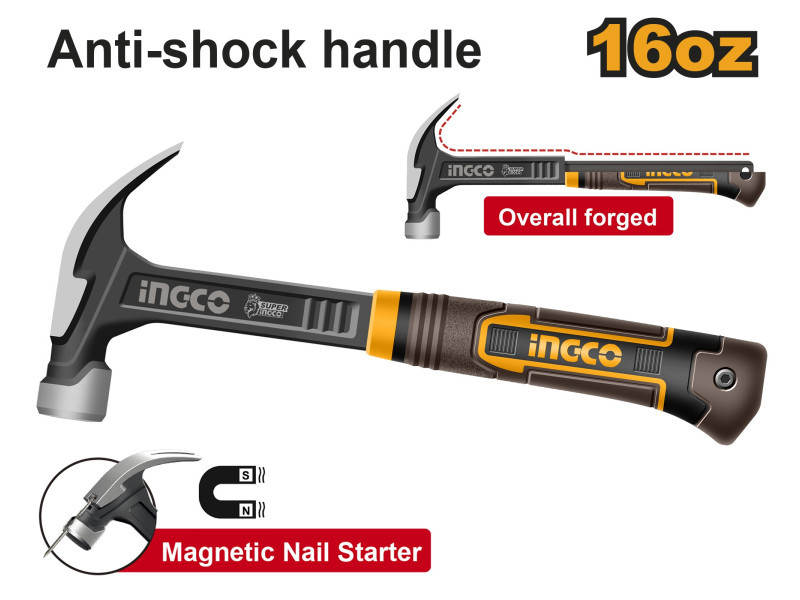 INGCO Kovácsolt ácskalapács 450 g könnyített mágneses