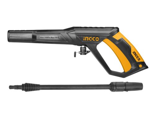 Magasnyomású mosóval használható szórópisztoly, mely dugattyús szivattyúval nagy nyomású vizet hoz létre tárgyak felületi tisztításáhozTartós nejlon anyagNagy méretű pisztolymarkolat a jobb fogásélményértTöbbféle vízáram-beállítás