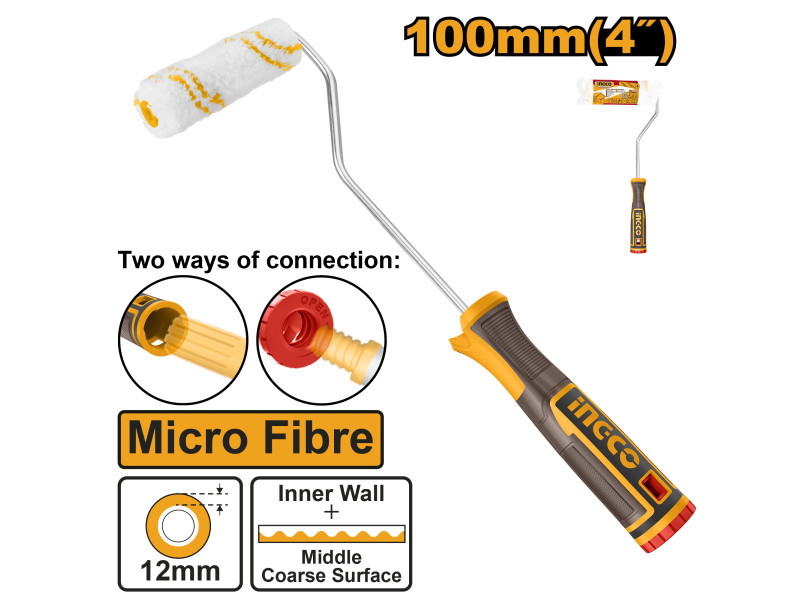 INGCO Mikroszálas festőhenger nyéllel 100 x 12 x 6 mm lágy foganytús