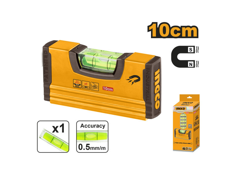 Szintezéshez, vízszintméréshezEgy buborékos kialakítás, 180°-os méréshezÜtésálló fedélKompakt, könnyen hordozhatóErősített mágnes, amely fém felülethez tapad