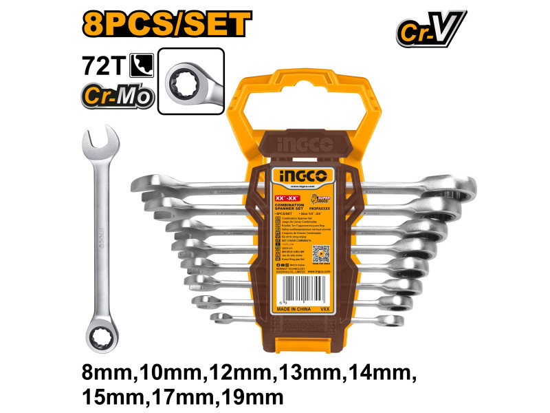 INGCO Racsnis csillag-villácskulcs készlet 8 részes 8-19 mm CrV