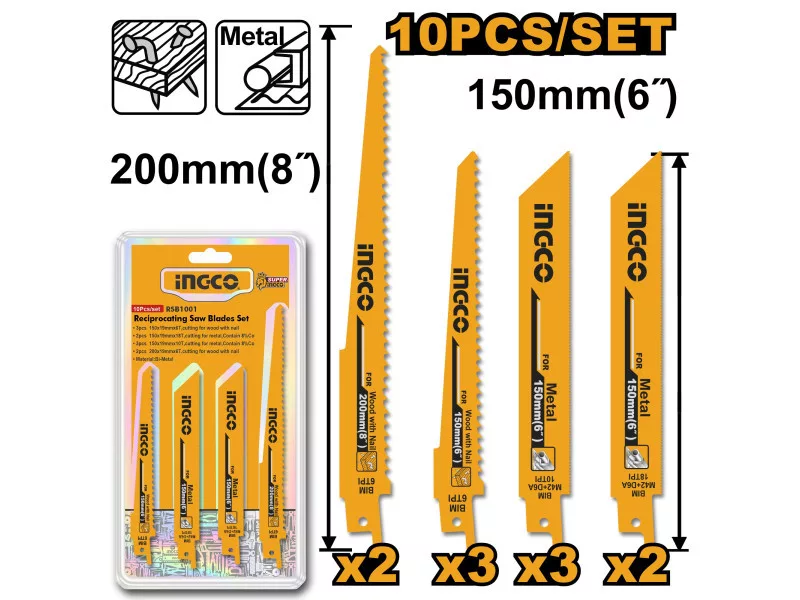INGCO Szablyafűrészlap készlet (10 db)