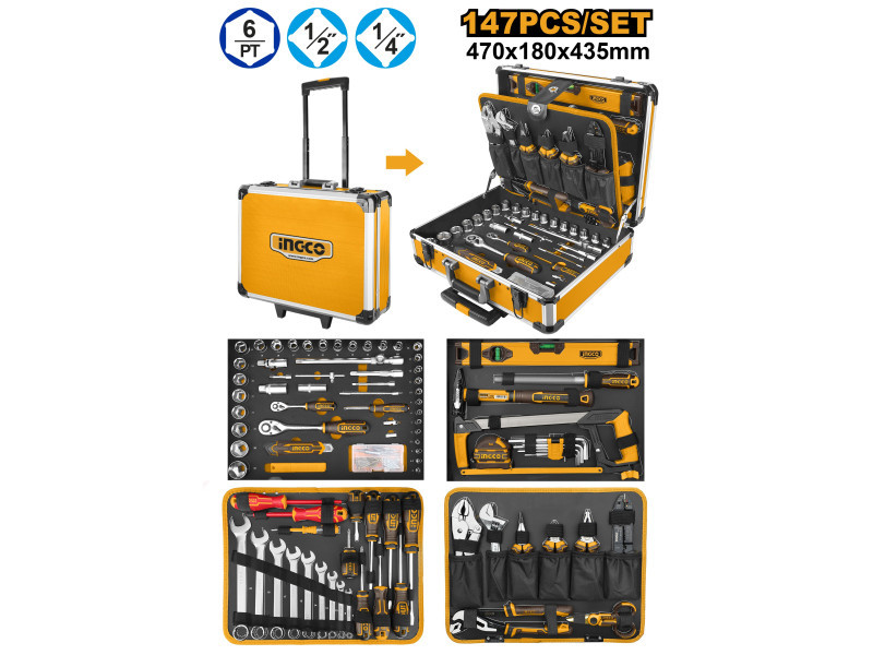 INGCO Szerszámkészlet 147 részes görgős kofferban