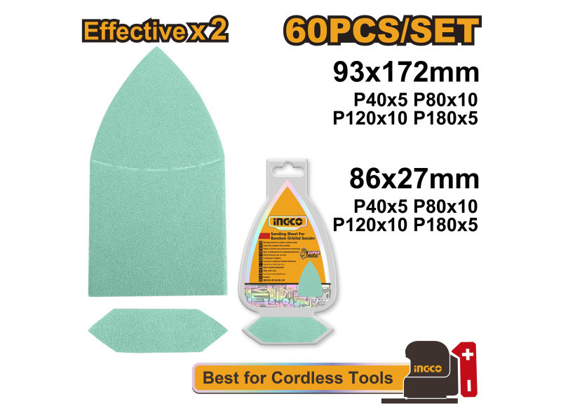 INGCO Tépőzáras csiszolópapír rezgőcsiszolóhoz (CPSLI2014) (60 db)
