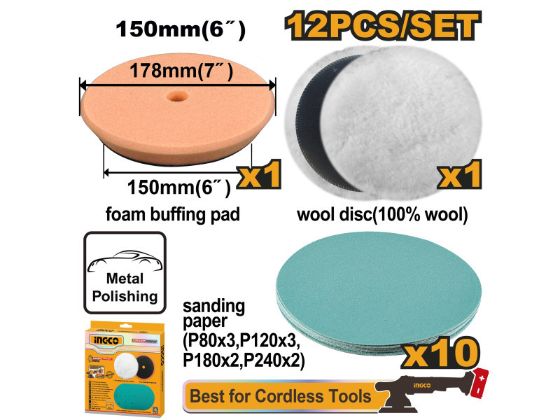 INGCO Tépőzáras polírozókorong készlet 12 részes