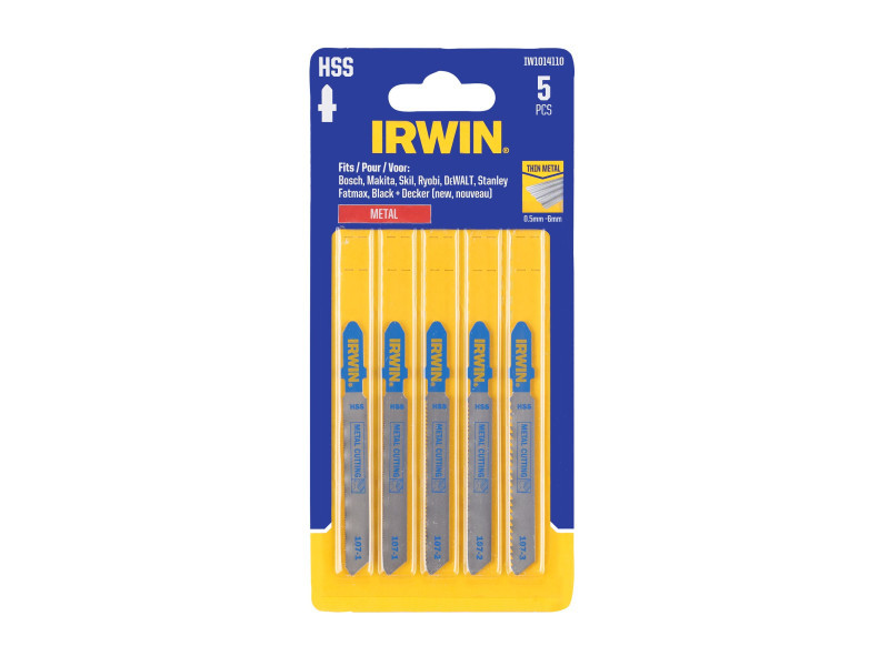 Az Irwin Pro Performance 10504233 dekopírfűrészlapok 1,5-10 mm vastagságú fémek fűrészelésére alkalmasak. A fűrészlapok erősek és robusztus felépítésűek, és kevésbé törékenyek. Agresszív fogazattal rendelkeznek, ami lehetővé teszi a gyorsabb fűrészelést. A készlet fűrészlapjai T csatlakozással rendelkeznek. A fűrészlapok a legújabb generációs szúrófűrészekhez is illeszkednek, amelyek univerzális csatlakozással rendelkeznek. Tartalom: 5 db
