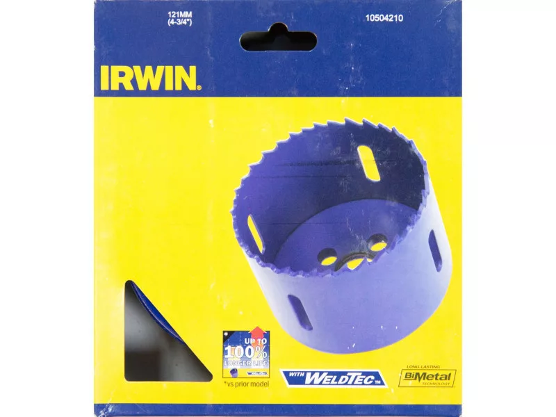 Az IRWIN® bimetál körkivágók különféle anyagokat vágnak át, beleértve: alumíniumot, rezet, vasat, rozsdamentes acélt, fát és cinket. Az elektronsugárral hegesztett nagysebességű acél (HSS) vágóél erősebb, tartósabb fogakat biztosít. A precízen beállított fogak gyorsabb behatolást és vágást biztosítanak. A bimetál szerkezet pedig szívósságot és hosszú élettartamot biztosít. WELDTEC™ TECHNOLÓGIA Nagyobb tartósságot és nagyobb vágási sebességet biztosít FOG KIALAKÍTÁSA Akár 100%-kal hosszabb élettartam és 50%-kal gyorsabb vágás 4,5 / 5,5 VÁLTOZÓ TPI A gyorsabb vágás, a kisebb nyomaték felhalmozódás és a jobb forgácseltávolítás érdekében VASTAG HÁTLAP Strapabírást biztosít a legnehezebb munkákhoz is BIMETÁL KONSTRUKCIÓ A megnövelt élettartam és tartósság érdekében