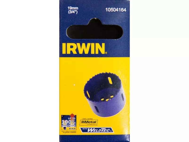 Az IRWIN® bimetál körkivágók különféle anyagokat vágnak át, beleértve: alumíniumot, rezet, vasat, rozsdamentes acélt, fát és cinket. Az elektronsugárral hegesztett nagysebességű acél (HSS) vágóél erősebb, tartósabb fogakat biztosít. A precízen beállított fogak gyorsabb behatolást és vágást biztosítanak. A bimetál szerkezet pedig szívósságot és hosszú élettartamot biztosít. WELDTEC™ TECHNOLÓGIA Nagyobb tartósságot és nagyobb vágási sebességet biztosít FOG KIALAKÍTÁSA Akár 100%-kal hosszabb élettartam és 50%-kal gyorsabb vágás 4,5 / 5,5 VÁLTOZÓ TPI A gyorsabb vágás, a kisebb nyomaték felhalmozódás és a jobb forgácseltávolítás érdekében VASTAG HÁTLAP Strapabírást biztosít a legnehezebb munkákhoz is BIMETÁL KONSTRUKCIÓ A megnövelt élettartam és tartósság érdekében