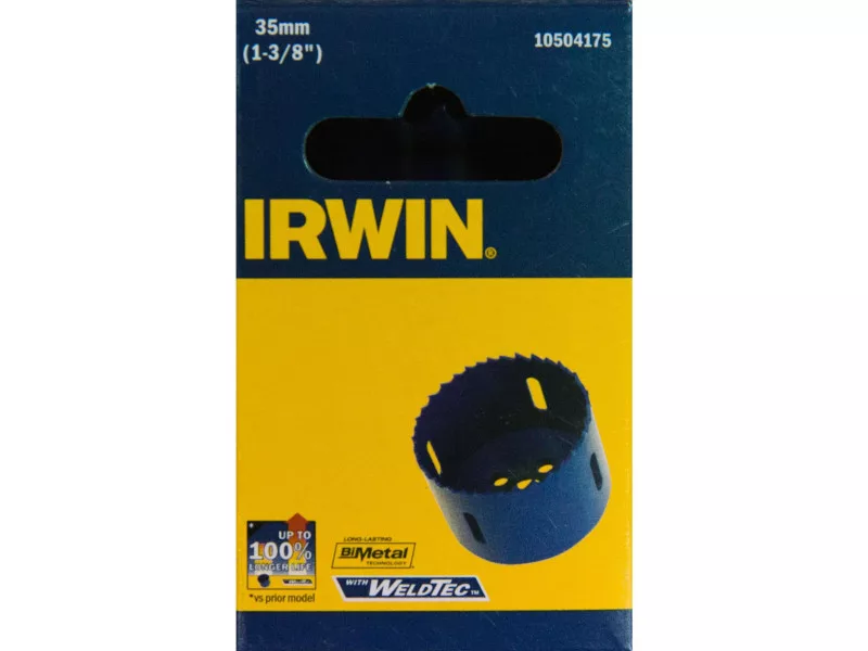 Az IRWIN® bimetál körkivágók különféle anyagokat vágnak át, beleértve: alumíniumot, rezet, vasat, rozsdamentes acélt, fát és cinket. Az elektronsugárral hegesztett nagysebességű acél (HSS) vágóél erősebb, tartósabb fogakat biztosít. A precízen beállított fogak gyorsabb behatolást és vágást biztosítanak. A bimetál szerkezet pedig szívósságot és hosszú élettartamot biztosít. WELDTEC™ TECHNOLÓGIA Nagyobb tartósságot és nagyobb vágási sebességet biztosít FOG KIALAKÍTÁSA Akár 100%-kal hosszabb élettartam és 50%-kal gyorsabb vágás 4,5 / 5,5 VÁLTOZÓ TPI A gyorsabb vágás, a kisebb nyomaték felhalmozódás és a jobb forgácseltávolítás érdekében VASTAG HÁTLAP Strapabírást biztosít a legnehezebb munkákhoz is BIMETÁL KONSTRUKCIÓ A megnövelt élettartam és tartósság érdekében