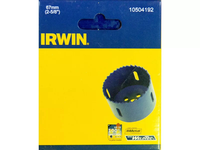 Az IRWIN® bimetál körkivágók különféle anyagokat vágnak át, beleértve: alumíniumot, rezet, vasat, rozsdamentes acélt, fát és cinket. Az elektronsugárral hegesztett nagysebességű acél (HSS) vágóél erősebb, tartósabb fogakat biztosít. A precízen beállított fogak gyorsabb behatolást és vágást biztosítanak. A bimetál szerkezet pedig szívósságot és hosszú élettartamot biztosít. WELDTEC™ TECHNOLÓGIA Nagyobb tartósságot és nagyobb vágási sebességet biztosít FOG KIALAKÍTÁSA Akár 100%-kal hosszabb élettartam és 50%-kal gyorsabb vágás 4,5 / 5,5 VÁLTOZÓ TPI A gyorsabb vágás, a kisebb nyomaték felhalmozódás és a jobb forgácseltávolítás érdekében VASTAG HÁTLAP Strapabírást biztosít a legnehezebb munkákhoz is BIMETÁL KONSTRUKCIÓ A megnövelt élettartam és tartósság érdekében
