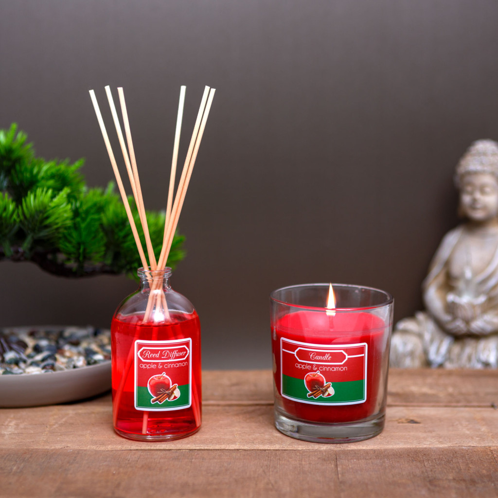 Illatgyertya és illatosító szett - alma & fahéj - 120 g + 100 ml