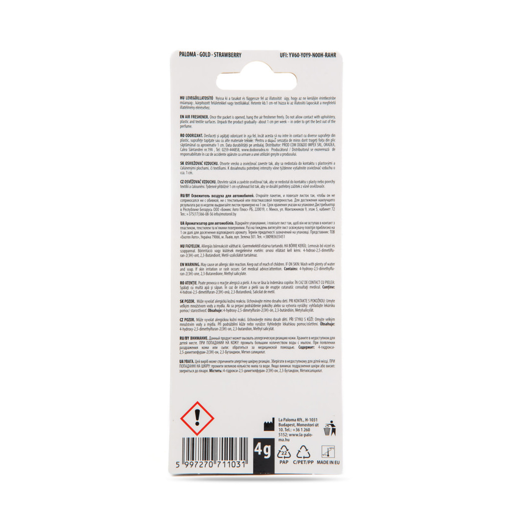 Frissítse fel autója levegőjét Paloma Gold illatosítóval és élvezze a kellemes utazást minden kilométeren!