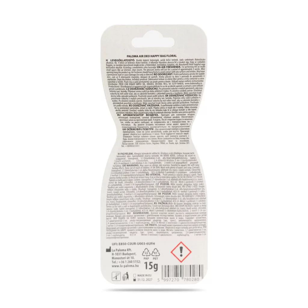 Ízléses kis tasak. A tasak belsejében illatgolyócskák találhatók, melyek több hétig kifejtik hatásukat. Használható lakásban, autóban.