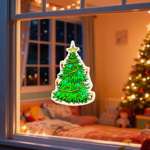 Dobja fel otthonát ezzel a vidám, tapadókorongos karácsonyi ablakdekorációval! A karácsonyfát ábrázoló dekoráció tökéletes választás ablakokra, tükrökre vagy egyéb sima felületekre. Az élénk színek és a kedves ünnepi motívum garantáltan vidám hangulatot varázsol otthonába. A tapadókorongos rögzítésnek köszönhetően könnyedén felhelyezhető és eltávolítható anélkül, hogy nyomot hagyna. Ideális választás gyerekszobákba, nappalikba, előszobába vagy akár irodai dekorációként is megállja a helyét.