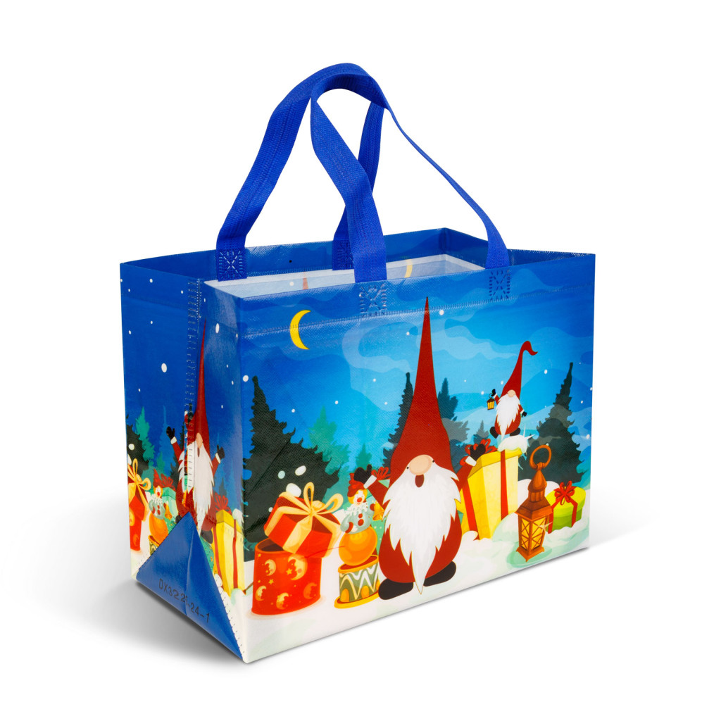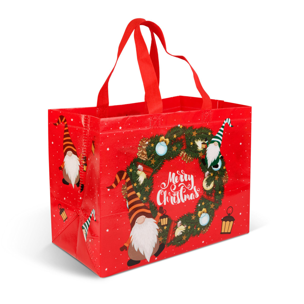 Ha szeretne igazán ütős és stílusos ajándékot adni barátainak és családjának karácsonykor, akkor ez a karácsonyi ajándéktáska tökéletes választás lehet átnyújtására! A vidám designnal ellátott, nem szőtt anyagból készült táska, 4 féle karácsonyi motívummal díszített. Strapabíró anyagból készült, mérete miatt ideális ajándékok és édességek tárolására, átadására. Nagyméretű fülének köszönhetően könnyű és kényelmes hordozhatóságot biztosít.