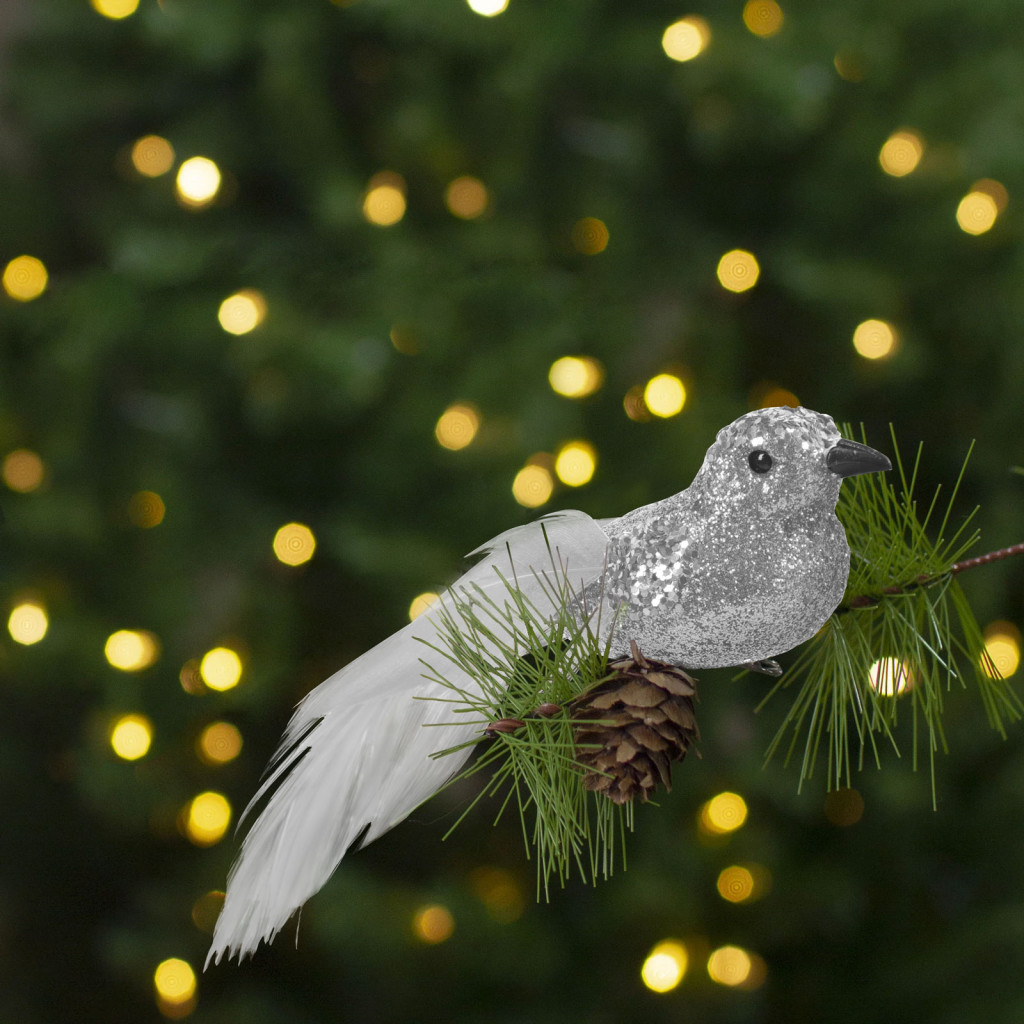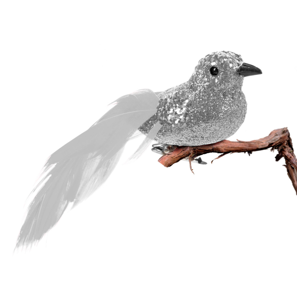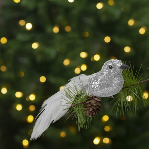 Karácsonyi dísz - csipeszes - glitteres madár - ezüst - 2 db / csomag
